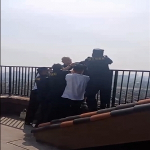 業(yè)主樓頂欲輕生,保安發(fā)現(xiàn)速搭救